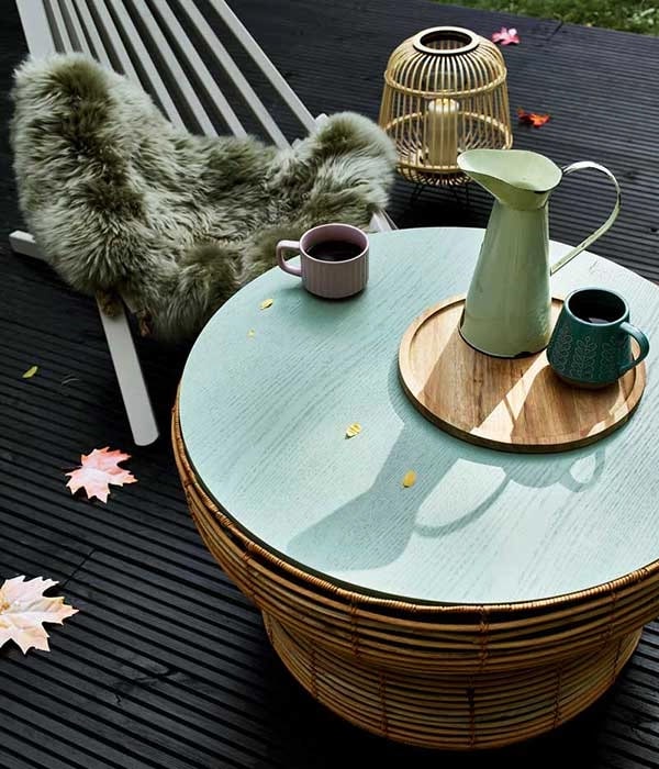 Low wooden deck chairs painted in Muted Clay and a coffee table in Willow also bring the garden colour scheme together. You'll want to use these pieces all year round, but for the winter months, the addition of cosy blankets (and mulled wine or hot chocolate) will encourage your guests to linger.