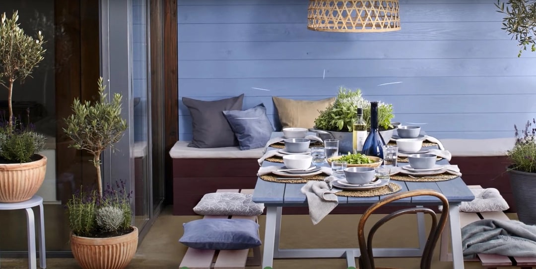 The inviting colour palette focuses on the worlds favourite colour, blue, and then accents it with hints of damson and violet to bring contrast and warmth. Complete the look by adding low maintenance plants with silvery foliage such as olive trees and succulents.