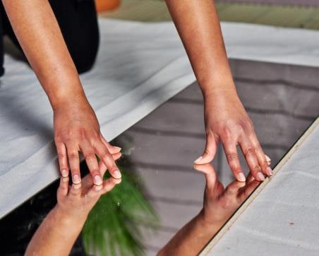 Place the trellis on your mirror and mark where you’ll need to cut.
