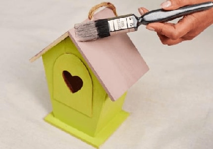 To spruce up a wooden birdhouse with fun colours, you’ll need: