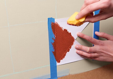 Hold your stencil in place with masking tape and use a sponge dipped in Cuprinol Garden Shades Terracotta to dab lightly through the stencil.