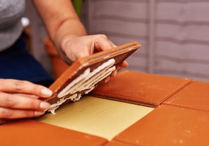 Position the tiles evenly over the surface of the table and stick them down one by one with a generous layer of glue.